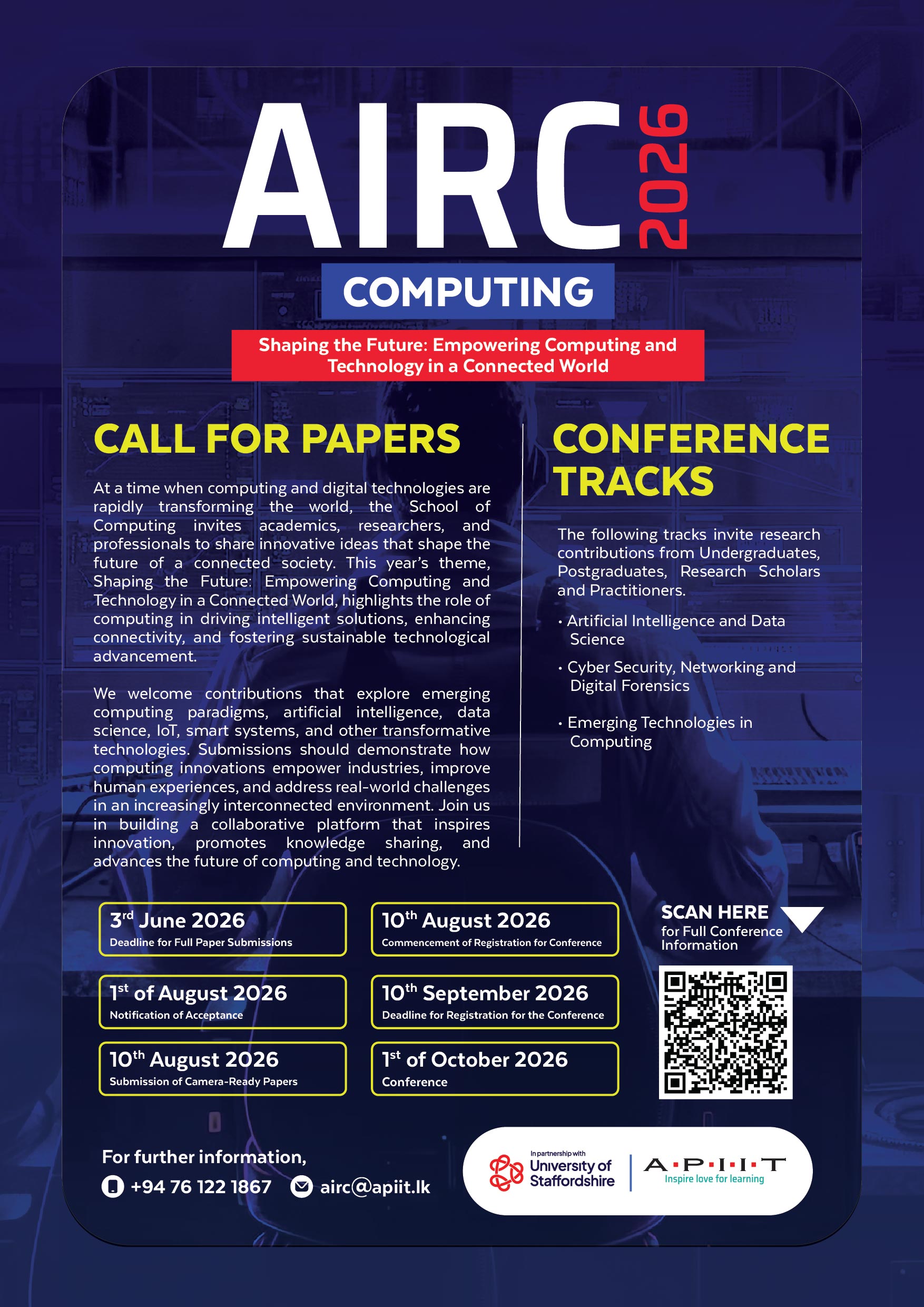 For any further details please email AIRC@apiit.lk or call +94 740 033 898